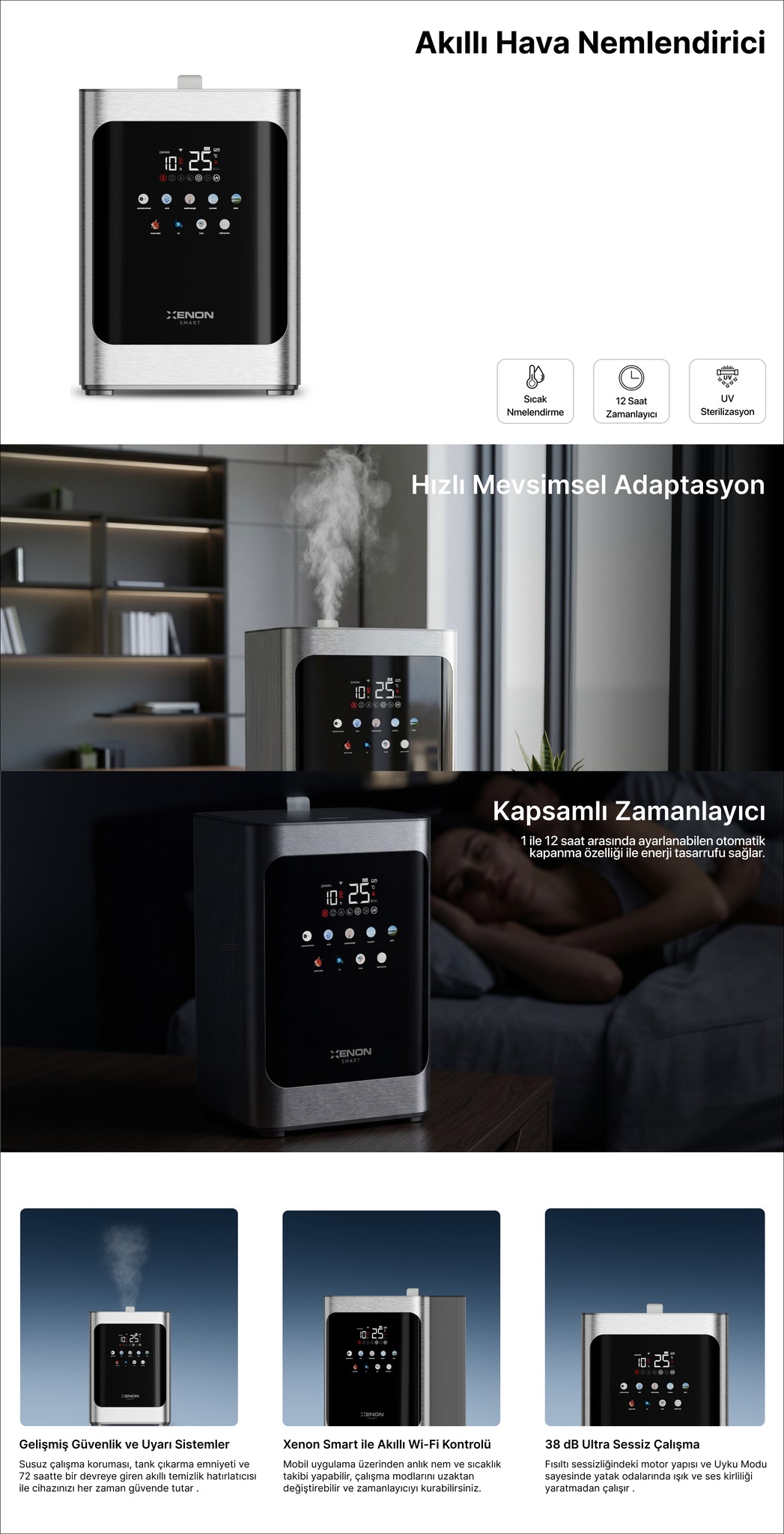 Akıllı Hava Nemlendirici Pure | Sıcak & Soğuk Buhar, 4.8L, UV + Plazma, Wi-Fi, 38dB Sessiz (X7452 )