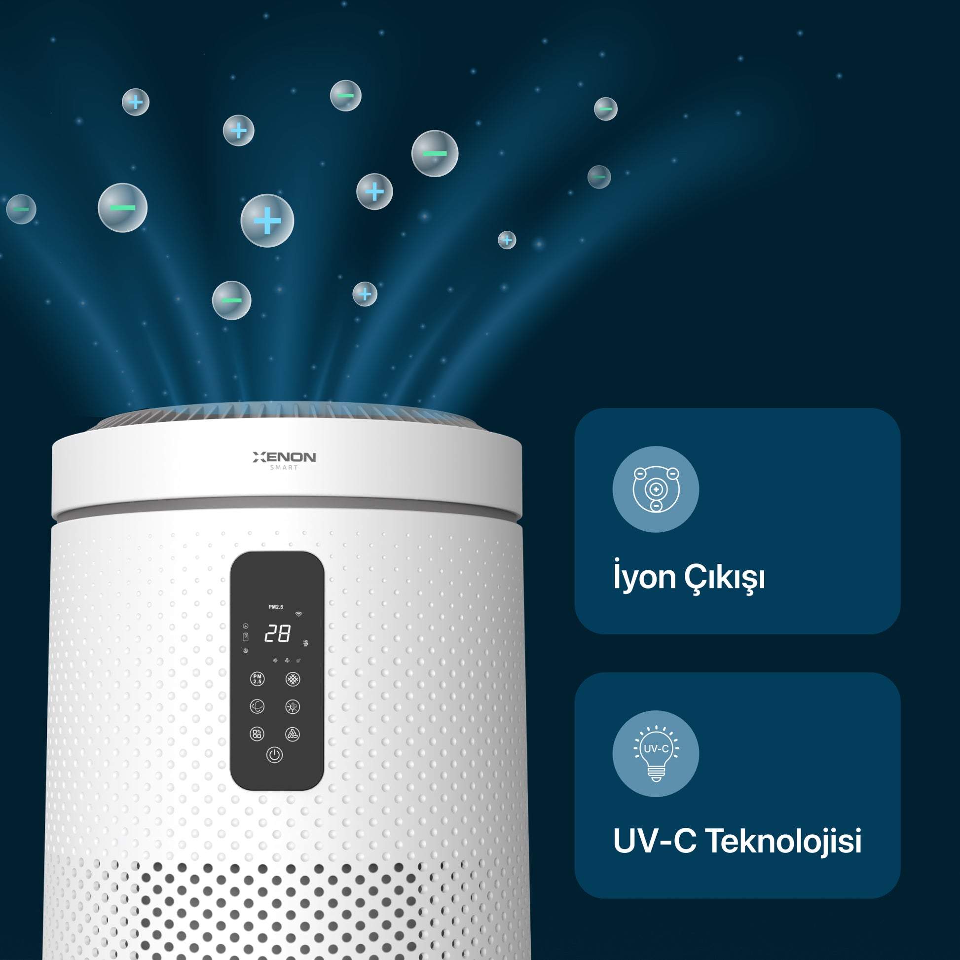 Wi-Fi 2.4 GHz bağlantısı sayesinde Xenon Smart mobil uygulaması ile uzaktan kontrol edebilir, tüm hava kalitesi verilerini anlık olarak izleyebilir, Alexa, Google Home ve Siri gibi sesli asistanlarla deneyiminizi daha da öteye taşıyabilirsiniz.