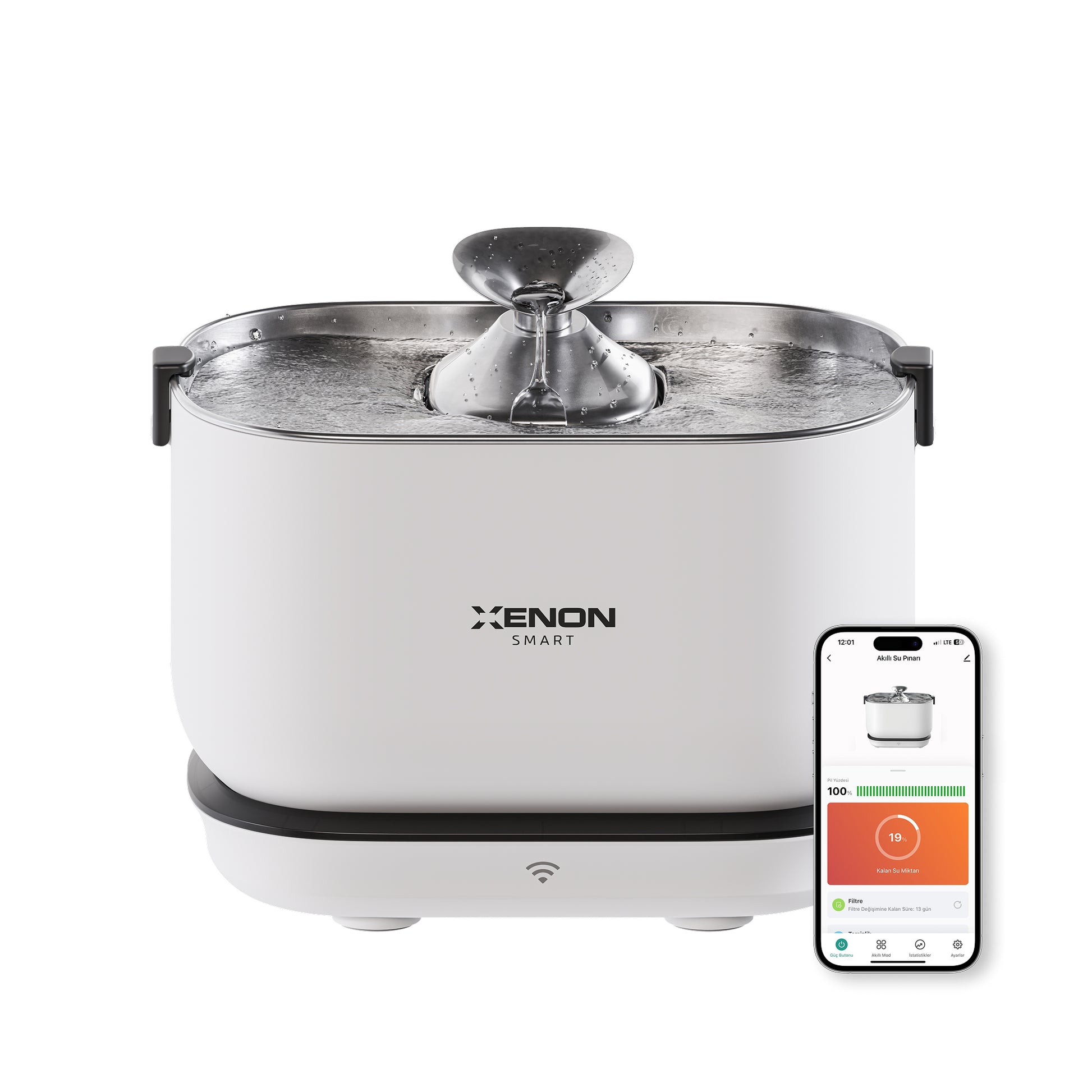Türkçe arayüze sahip, iOS ve Android uyumlu ücretsiz Xenon Smart mobil uygulaması sayesinde Akıllı Su Pınarı’nı istediğiniz yerden kolayca kontrol edebilir, cihazın çalışma modunu değiştirebilir, sterilizasyon işlemini başlatabilir ve kedinizin su tüketimini takip edebilirsiniz.