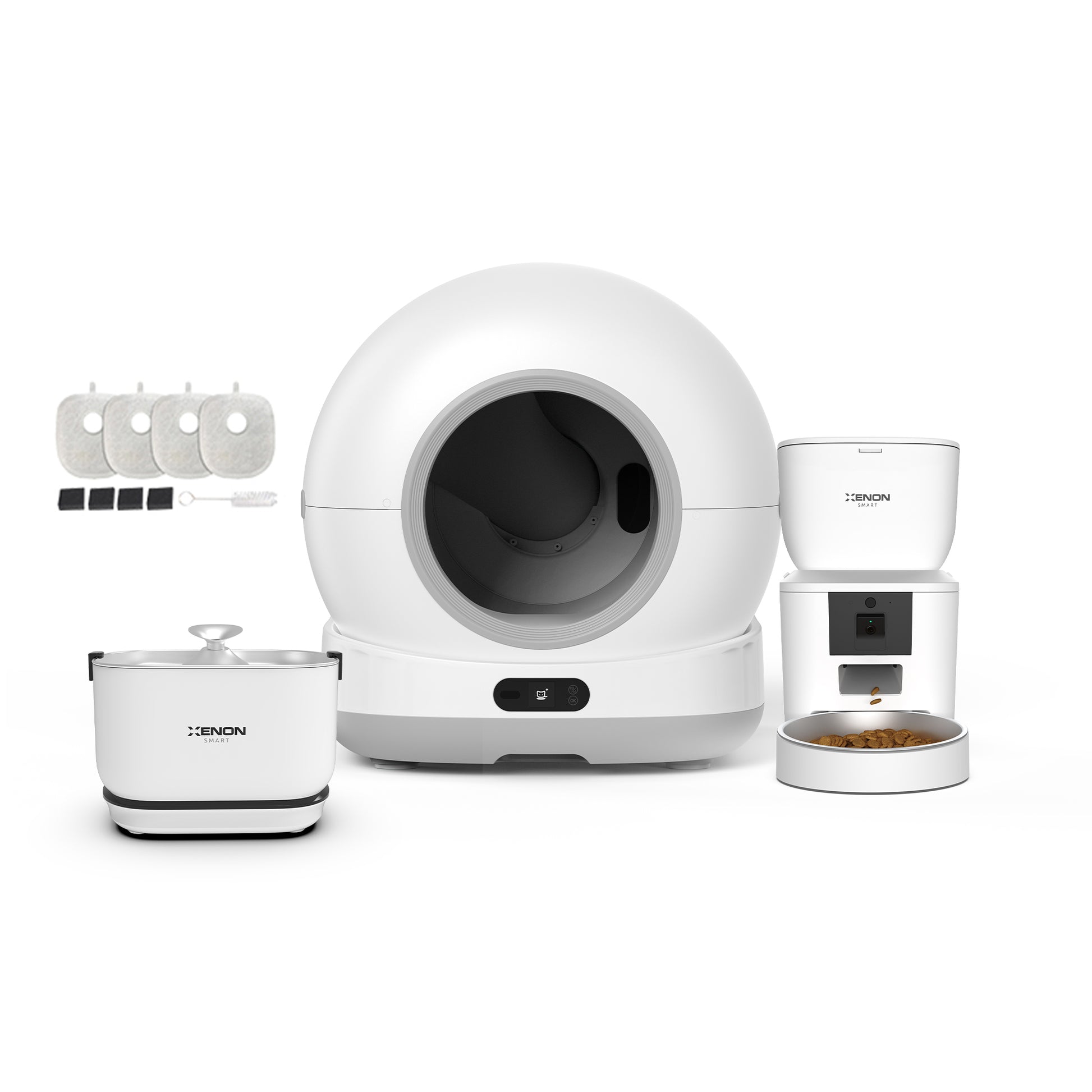 Akıllı Kameralı Kedi Tuvaleti, Beyaz Mama Kabı ve Otomatik Su Pınarı 4'lü Pet Ürünleri Seti