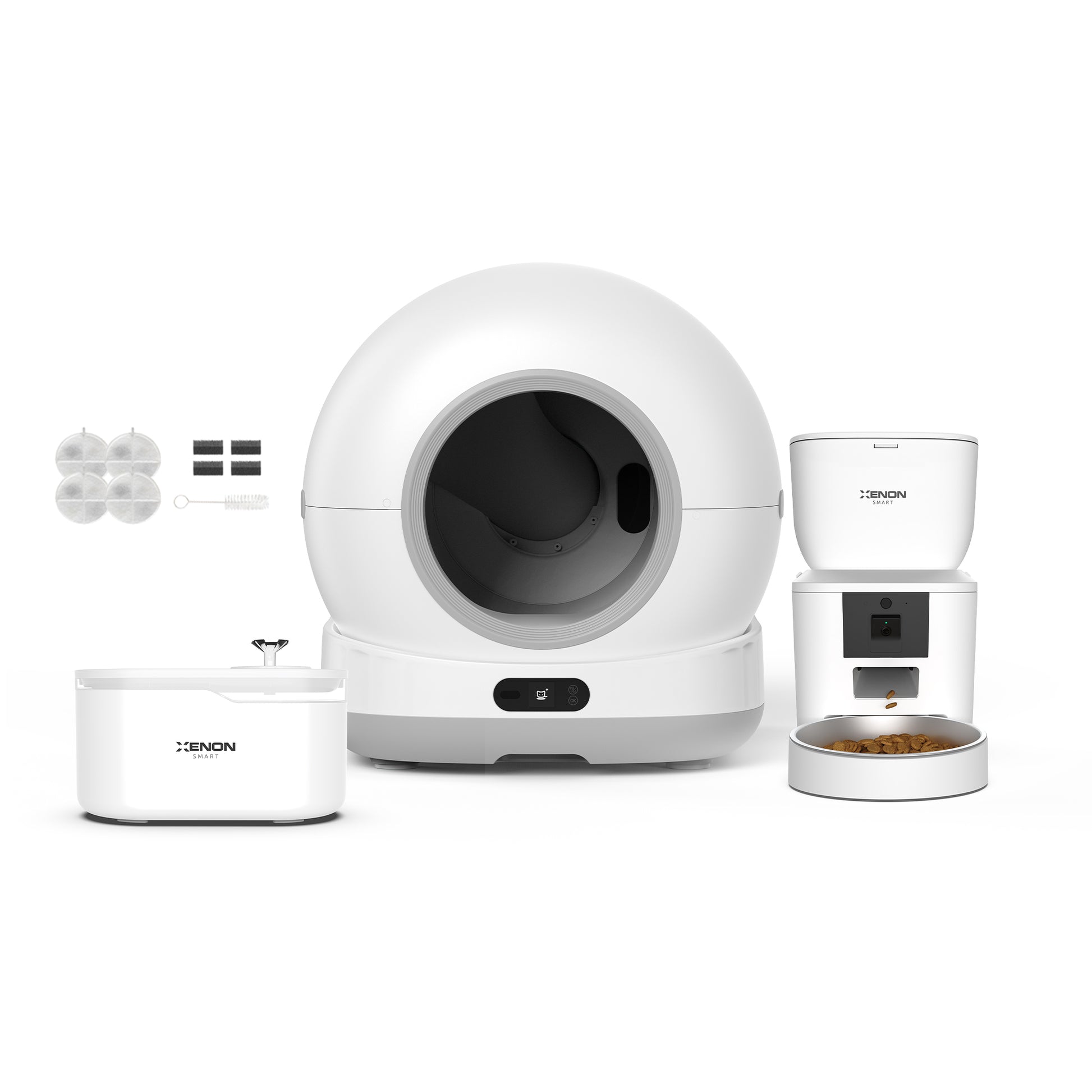 Akıllı Kedi Tuvaleti, Beyaz Mama Kabı ve Su Pınarı 4'lü Pet Ürünleri Seti