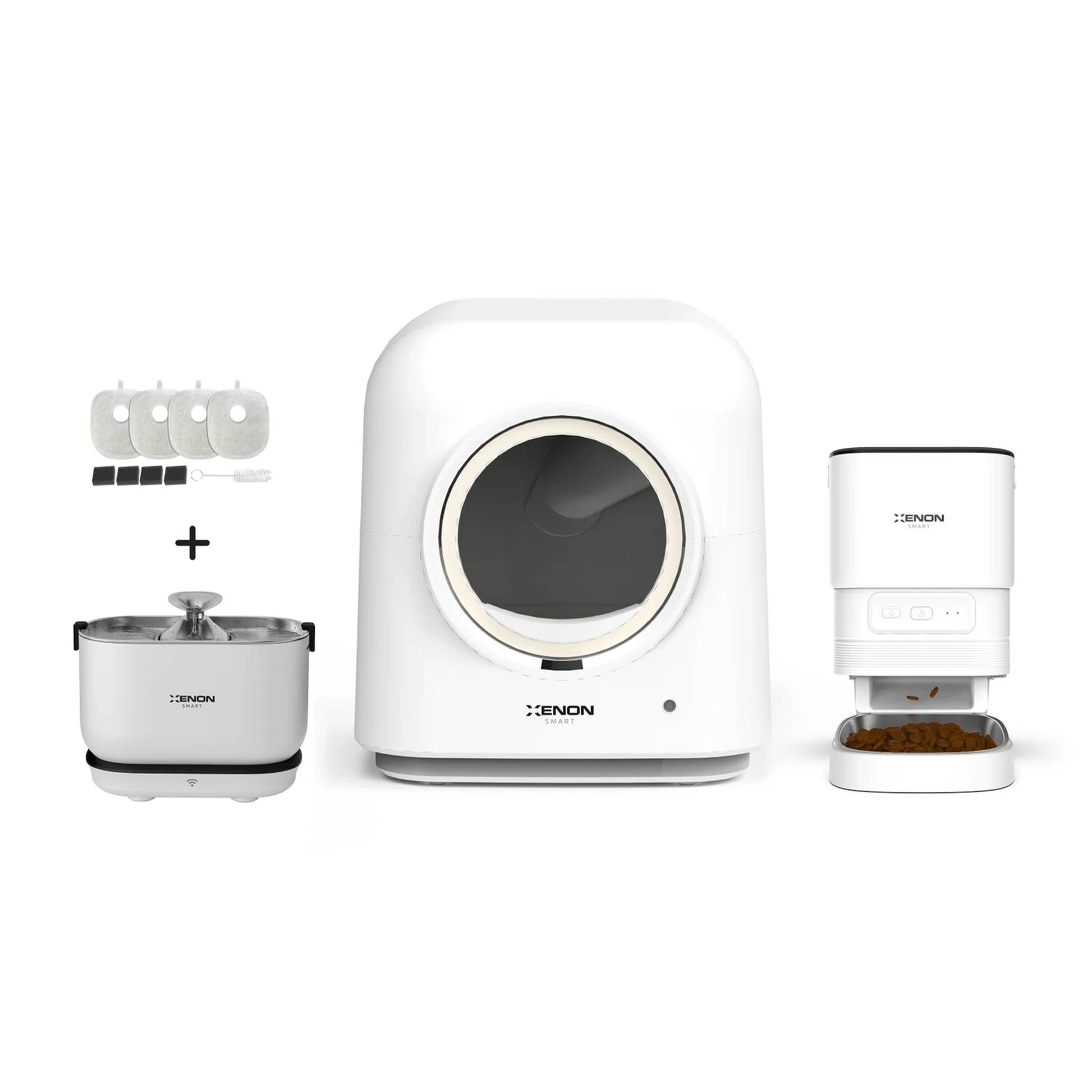 Akıllı Kedi Tuvaleti, Çelik Mama Kabı ve Akıllı Bataryalı Su Pınarı 4'lü Pet Seti
