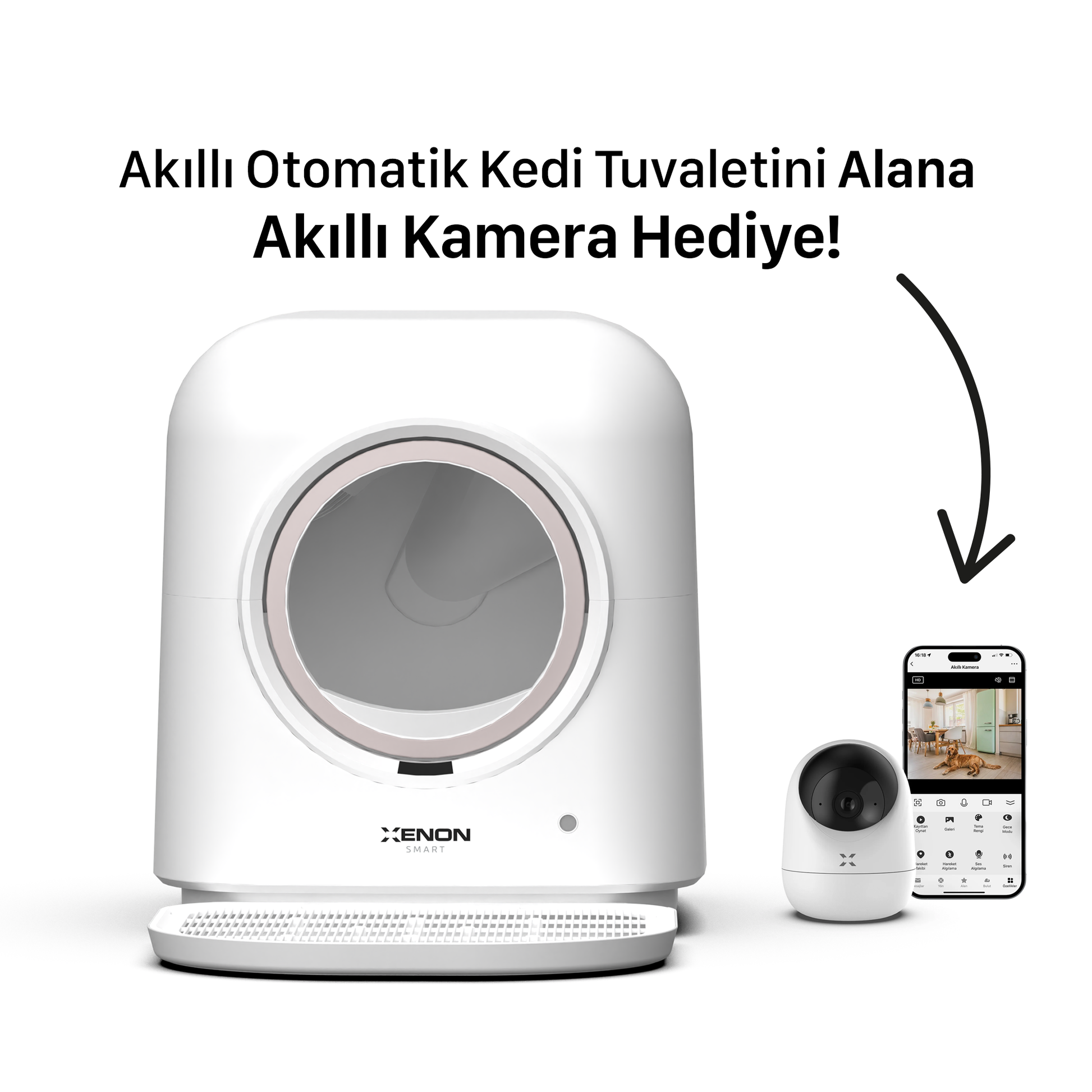 Akıllı Kedi Tuvaleti’nin temizlik, kum boşaltma, sterilizasyon gibi ayarlarını evde olmasanız da istediğiniz yerden yönetmenizi, kedinizin tuvalet alışkanlıklarını ve kilosunu izleyerek sağlık durumu hakkında bilgi sahibi olmanızı sağlayan Xenon Smart mobil uygulamasını ücretsiz olarak indirip kullanabilirsiniz.