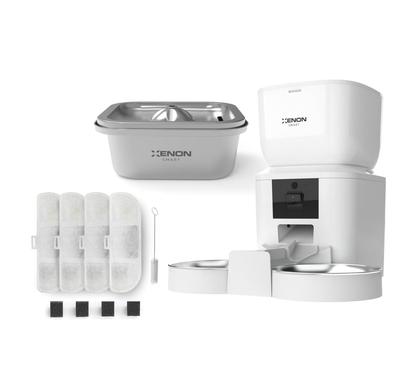 Akıllı Çift Hazneli Mama Kabı, Çelik Su Pınarı ve Filtre Seti