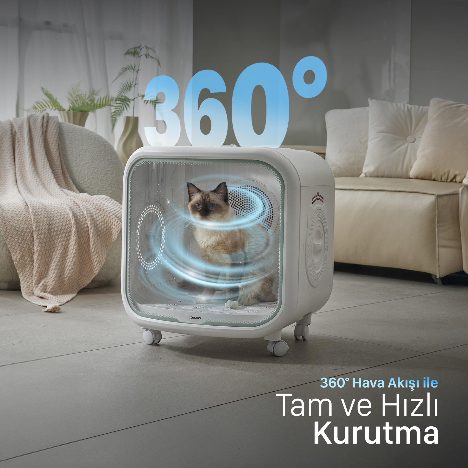 Sıcaklığı eşit şekilde dağıtan 360° hava akışı sayesinde göbek, koltuk altı ve parmak araları gibi ulaşılması zor bölgeleri de ulaşarak evcil hayvanınızın tam anlamıyla kurumasını sağlar.