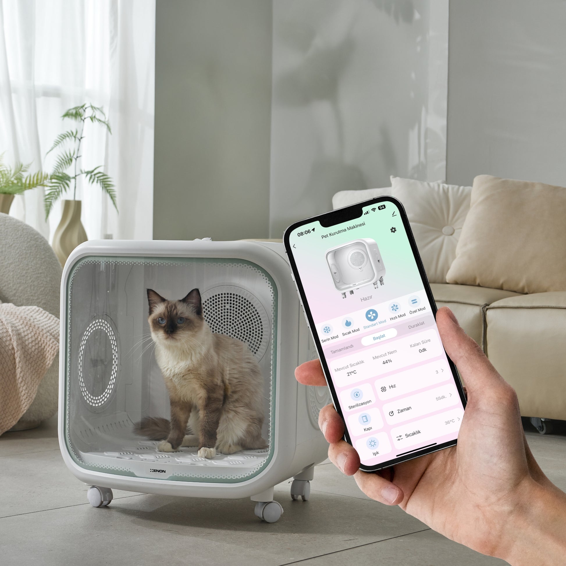 Evcil Hayvan Kurutma Makinesi’ni isterseniz cihaz üzerindeki dokunmatik kontrol paneli isterseniz Xenon Smart mobil uygulaması ile akıllı telefon ya da tabletiniz üzerinden oturduğunuz yerden yönetebilirsiniz.