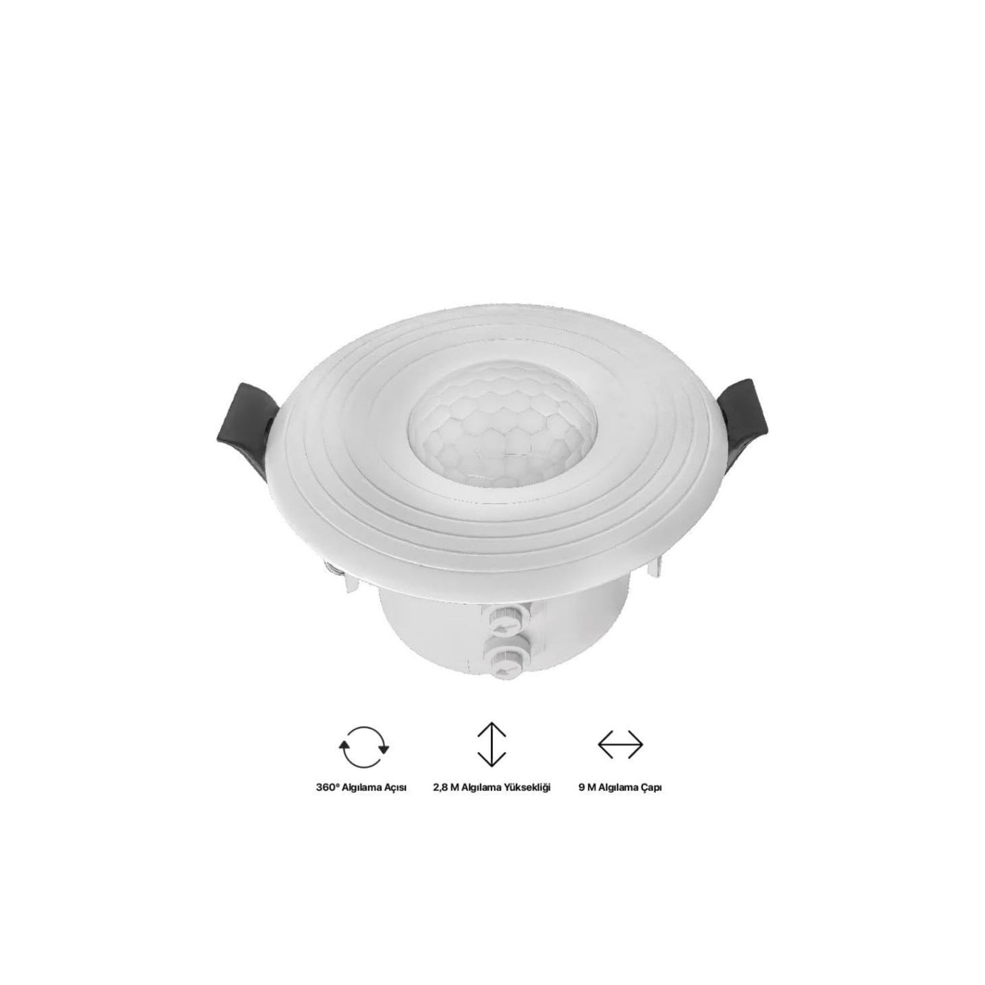2.8M yükseklik, 9M çap algılama alanı sayesinde 63 metrekarelik alanı kucaklayabilen bu sensör, alanın farklı yerlerindeki her türlü hareketi algılar.